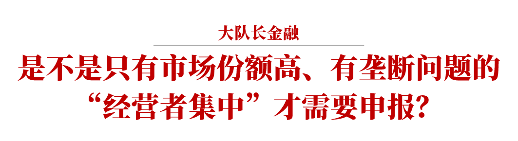 并非如此。如果構(gòu)成“經(jīng)營者集中”,是否需要申報僅取決于相關(guān)主體的營業(yè)額情況,而與市場份額、是否壟斷都沒有關(guān)系。此時,只要相關(guān)主體中有兩個以上中國境內(nèi)營業(yè)額達(dá)到4億元以上,且合計中國境內(nèi)營業(yè)額達(dá)到20億元以上或全球營業(yè)額達(dá)到100億元以上,就需要進(jìn)行申報。