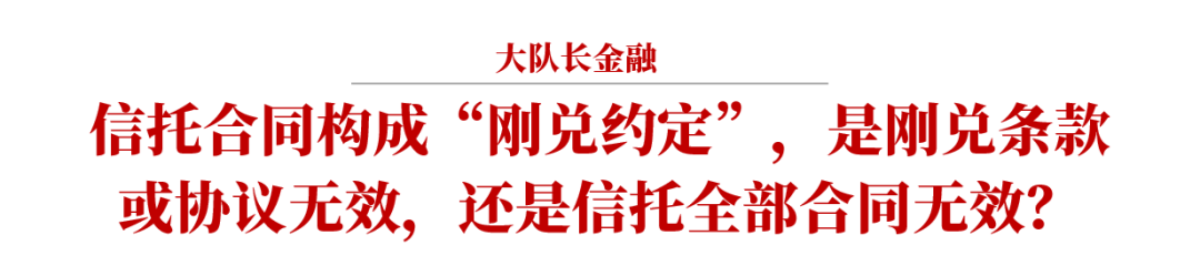 (1)如果信托受益權轉讓安排相關協議與《信托合同》同時簽訂或作為簽訂《信托合同》的核心前提條件,也就是說在《信托合同》簽訂之時,信托受益權的遠期回購安排就已經確定,包括回購時間及回購金額,則該信托受益權轉讓安排應當視為信托關系的組成部分,該種“剛兌約定”很有可能在司法實踐中導致整個信托合同無效。