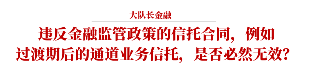 在絕大多數信托合同效力之爭的案例中,當事人主張合同無效的理由主要是違反各類金融監管規定。包括前述場外配資問題、剛兌問題,以及將要討論的信托通道業務效力問題,其核心問題都是,違反金融監管政策的信托合同是否必然無效,其延伸問題是,違反社會公共利益如何把握。