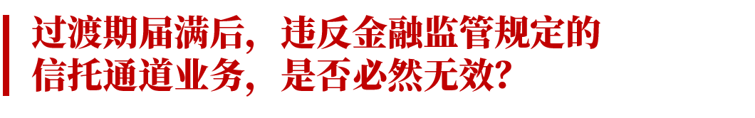《九民紀要》第93條對通道業務的含義、效力,《資管新規》過渡期安排等進行了明確。目前《資管新規》過渡期已延長至2021年底。基于《九民紀要》的規定,在過渡期內的通道業務,如果不存在其他無效事由的,將被認定為有效。那么,根據該條規定,是否可以得出過渡期之后的通道業務,將必然被認定為無效的結論。