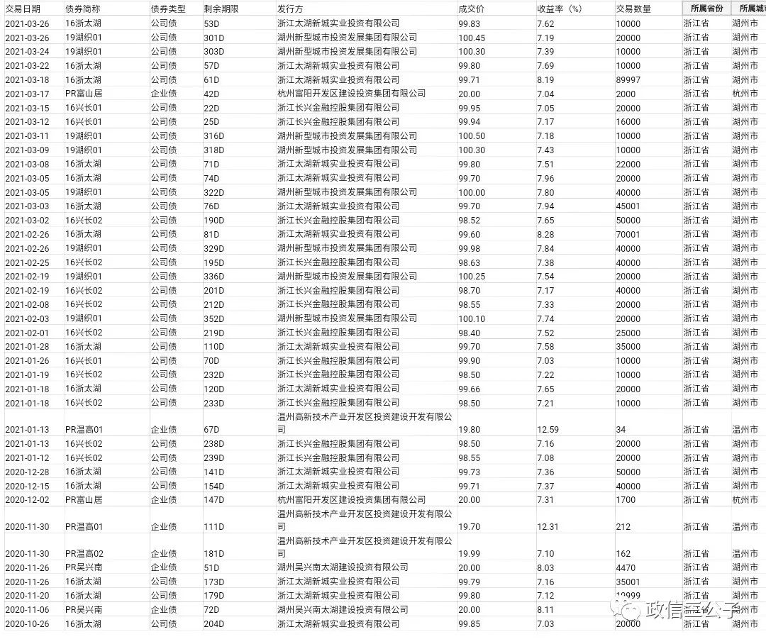 整理了一下過去半年內,到期日在2年以內的二級市場收益高于8%的江浙魯城投的成交信息,分享給大家。