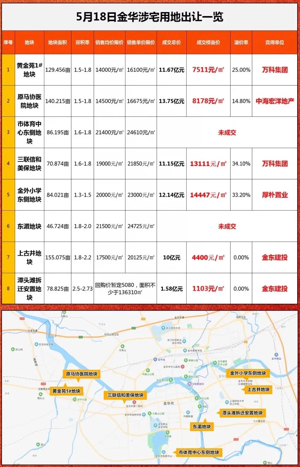 本拍企業都是深耕金華的老面孔,主要包括中交、金地、保利、萬科等5家房企