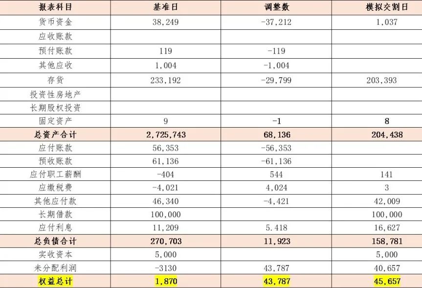 3)拆分以后的資產負債表,非目標資產部分的資產,負債以及各項權益均歸屬于原合作方,與收購方無關。