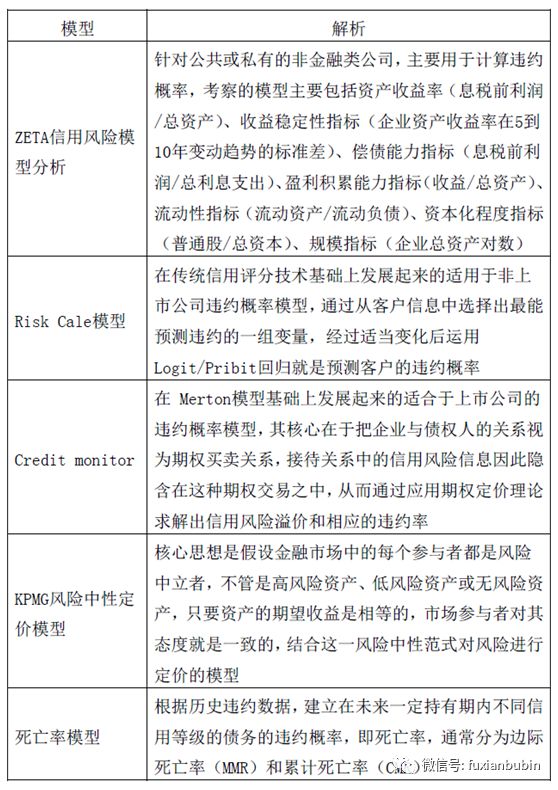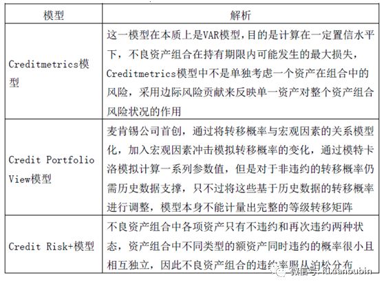 對于金融業(yè)務的開展而言,還要考慮信用風險組合模型,根據(jù)實踐,目前采用的模型主要包括以下表所示: