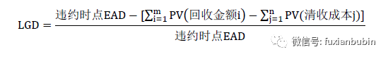 公式中,清收成本現(xiàn)值則是違約債項清收所發(fā)生的直接和間接成本的現(xiàn)值總和。而債項回收現(xiàn)值的計算,是債項自違約時點起所有屬于該債項的實際回收現(xiàn)金流在違約時點的現(xiàn)值總和。計算公式為: