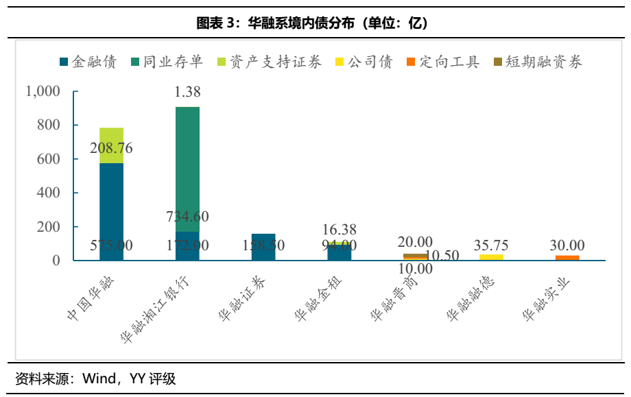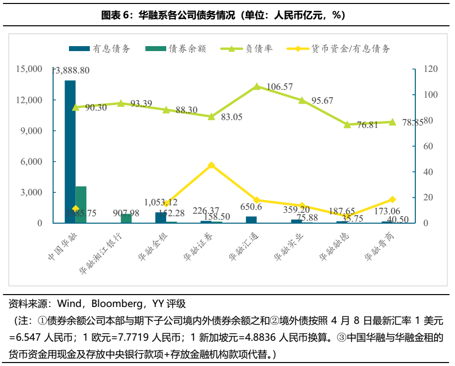 華融系目前有存續(xù)債的公司共13家,除中國華融自身以外,另有6個一級子公司、3個二級子公司、3個三級子公司有存續(xù)債,此外中國華融和華融金控均為港股上市公司。