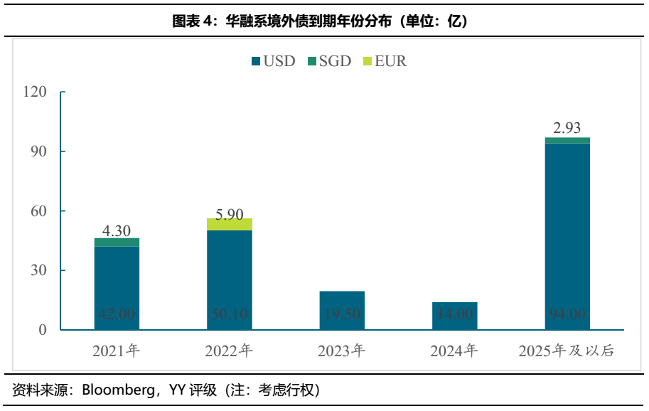 從債券到期分布來看,境外債主要集中在2021年-2022年到期,另2025年及以后到期規(guī)模也較大。