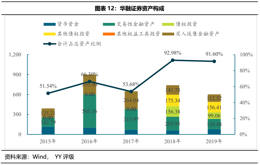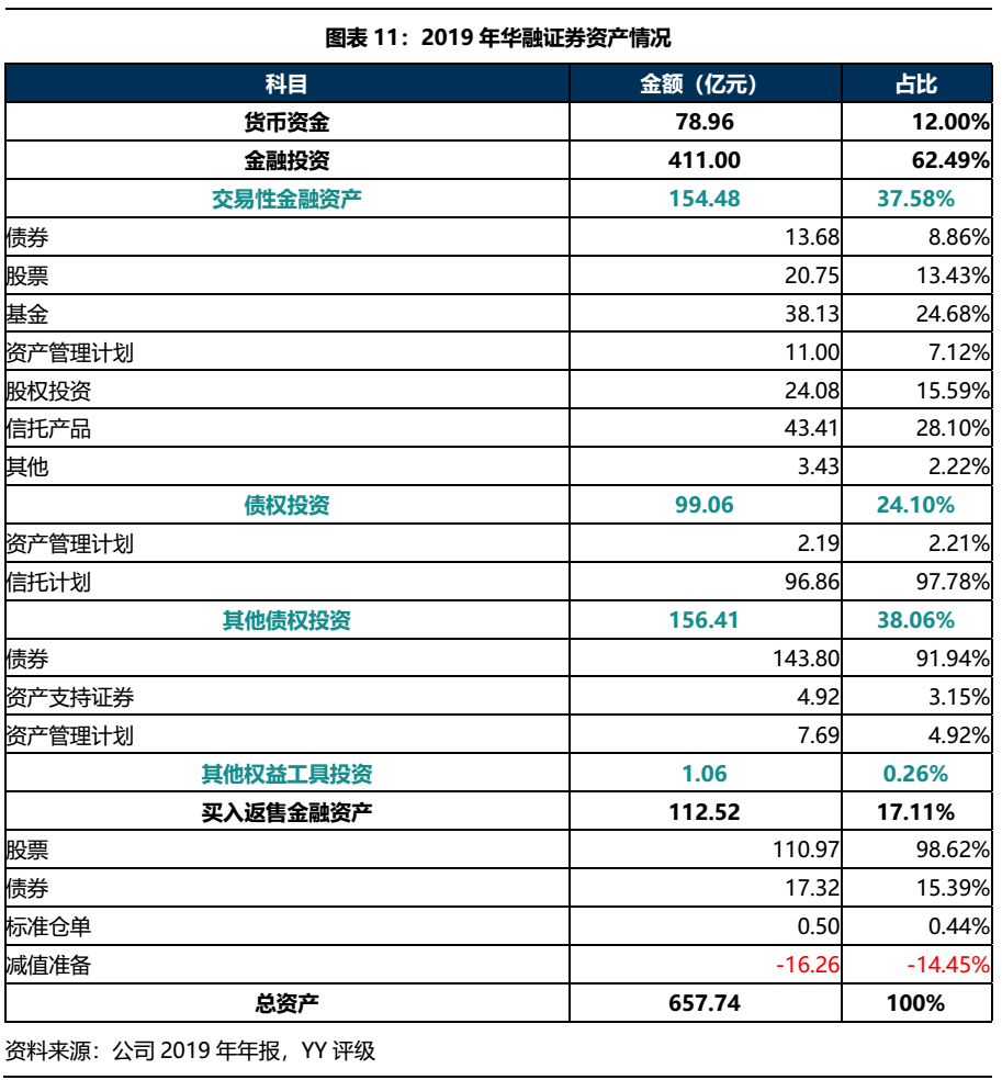 華融證券2019年資產(chǎn)合計657.74億元,以貨幣資金,金融投資和買入返售金融資產(chǎn)為主,從細(xì)分科目來看,公司資產(chǎn)主要投向債券、股票和信托等資產(chǎn)。