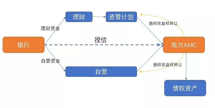 商業(yè)銀行處置不良資產(chǎn)的非常規(guī)方式基本是通道嵌套再疊加回購及收益權(quán)轉(zhuǎn)讓,這些模式都不同程度涉及“假出表”。在具體模式上可以分為AMC代持、理財資金對接、分級資管計劃模式等等,大體做法是銀行為AMC提供授信,或者認購AMC發(fā)行的債券,AMC用銀行提供的資金購買銀行的不良資產(chǎn),同時銀行承諾未來回購該筆資產(chǎn)。這類模式本質(zhì)上是銀行名義上將不良資產(chǎn)轉(zhuǎn)讓給了地方AMC,但是是通過回購或者收益互換等方式將資產(chǎn)的風(fēng)險“接回”,AMC本質(zhì)上只是個通道而已,幫助銀行“假出表”,實現(xiàn)銀行規(guī)避資產(chǎn)風(fēng)險計提和資本充足率等監(jiān)管指標的目的。