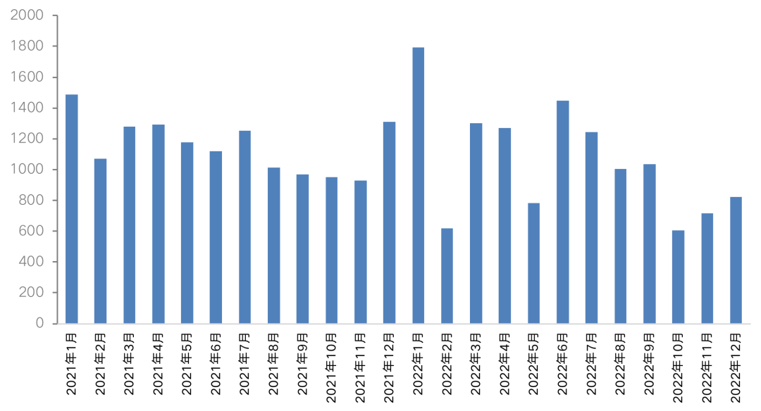 圖:2021-2012年樣本房企月度債務到期規模(人民幣,億元)