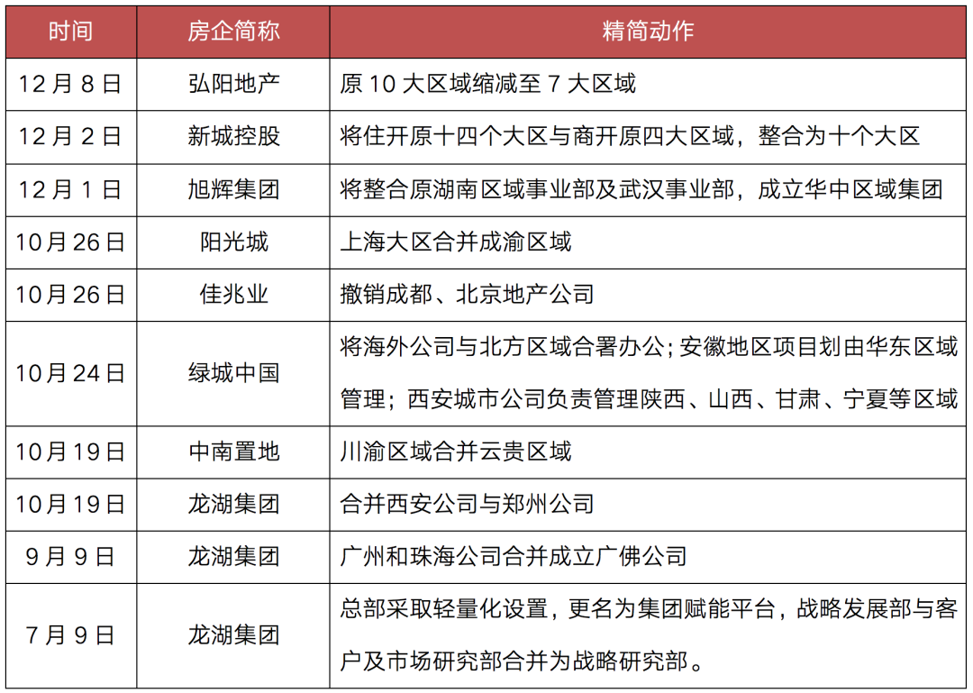 表:近期部分房企組織架構精簡情況