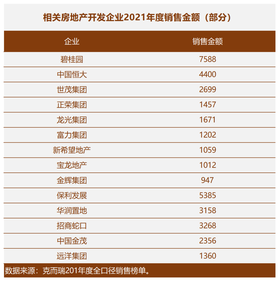 2021年,克而瑞全口徑銷售排名為:中南建設(shè)1965億元(No.17)、陽光城1838億元(NO.19)、禹洲集團1050億元(No.40)。