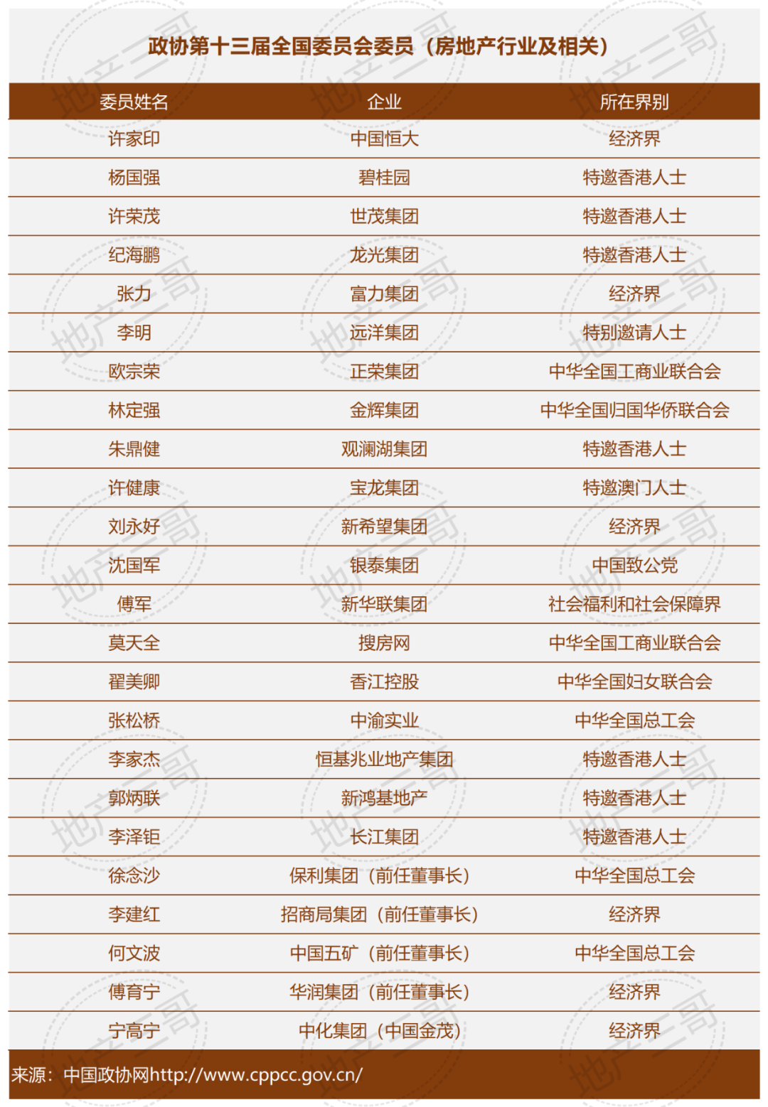 二、來自房地產(chǎn)企業(yè)(相關(guān))的全國政協(xié)委員