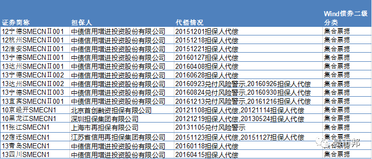 協會的區域集優更主要是親兒子中債增信在提供擔保,而中小企業私募債則是以區域的城投或國企擔保居多,最后暴雷項目都是通過擔保代償完成了兌付。