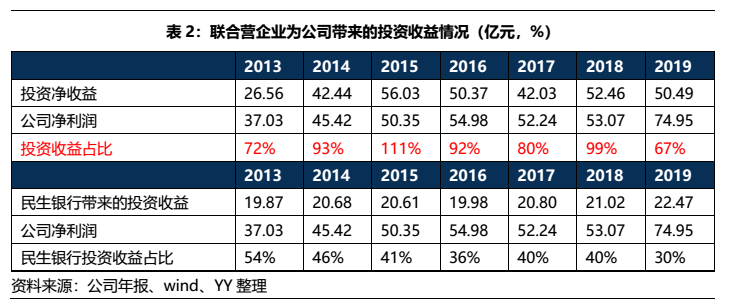 此外,公司投資了較多優質聯合營企業,如民生銀行、新網銀行、新希望化工、新希望地產等,每年都能帶來將近50億的凈投資收益,占據了公司近90%的凈利潤。尤其是民生銀行是優質金融資產,每年都能夠穩定地帶來20億左右的投資收益,貢獻了公司40%左右的凈利潤。