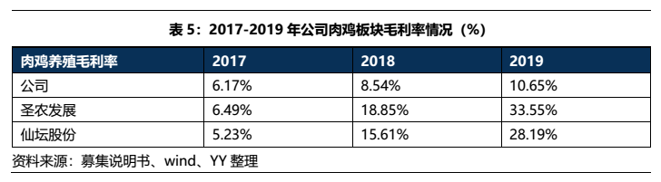 在禽養殖業務上,公司所養殖種類為白羽禽類,養殖基地主要集中于山東地區,養殖規模為32,392萬只(19年),目前已打通了育種-養殖-屠宰-禽肉初加工的一體化產業鏈,在育種和屠宰端具有一定優勢。但公司屠宰出產的禽肉長期以來主要依賴批發市場,品牌較弱,從毛潤率水平來看,與圣農、仙壇差距較大,盈利能力并不強。