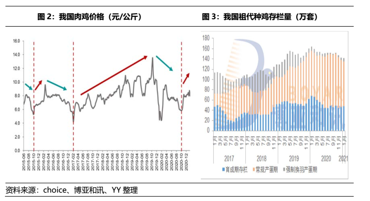 從價格周期來看,肉雞價格在19年11月達到頂峰后就開始一路下行,已經調整了近一年了,祖代雞存欄量經過1年的產能出清,已經處于較低水平,業內普遍認為21年雞價有望溫和上漲,所以短期內公司的禽養殖板塊盈利向好。