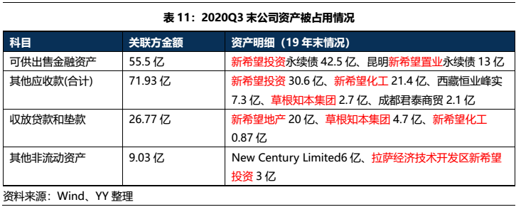 但資產端仍存在被實控人占用資金的小瑕疵。截至20Q3末,公司總資產1,669億,保守估計有163億資產均被實控人劉永好所控制的新希望投資、新希望地產、新希望化工、草根資本等公司占用,占用比例較高(10%),可能存在后續扯皮的內部事情。