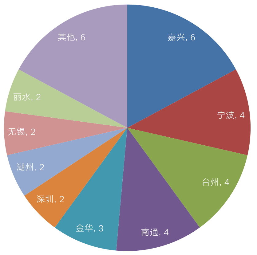具體城市而言,嘉興表現搶眼,超百輪地塊有6宗,占比達17%,房企競爭依然較為激烈。近期,嘉興熱點板塊推地頻率明顯提升,優質地塊分布遍布南湖、秀洲、海寧和平湖等區域,6宗高競拍地塊均以最高限價成交,實際溢價率均超30%。
