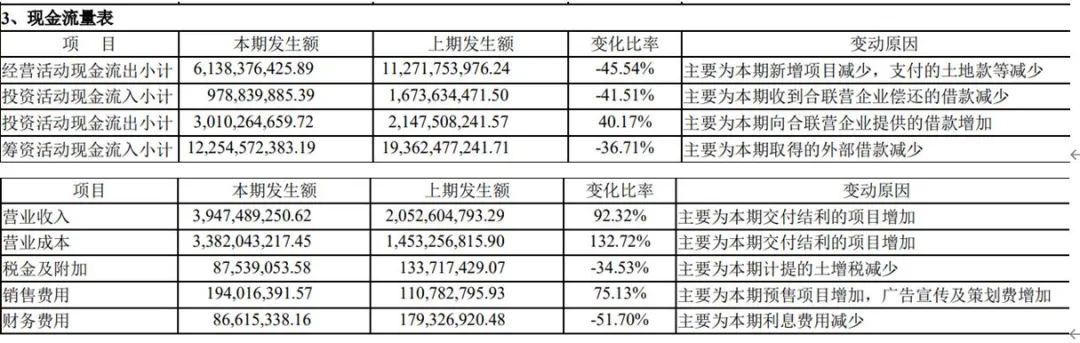公告解釋是“本期新增項目減少,支付的土地款等減少”。
