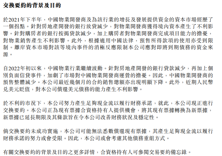 交換要約一經(jīng)實(shí)行,將改善本公司的整體財(cái)務(wù)狀況、延長其債務(wù)的到期日、強(qiáng)化其資產(chǎn)負(fù)債表及提升其現(xiàn)金流管理。