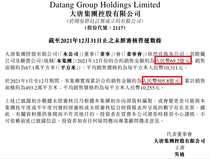 我們都說2021下半年房地產(chǎn)慘,但是對(duì)比起來,大唐集團(tuán)控股的2021年12月似乎表現(xiàn)不錯(cuò)。