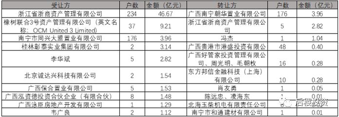 廣西省持牌AMC是4+2的格局(廣西金控、廣投資產(chǎn)),從成交數(shù)據(jù)來看,東方和廣投沒有查到成交記錄。