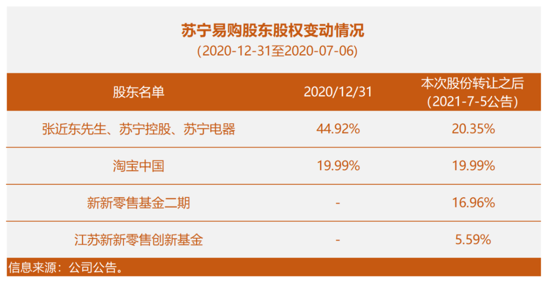 江蘇新新零售創新基金二期(有限合伙)自轉讓方處受讓其持有的蘇寧易購上市公司總股本股的16.96%。