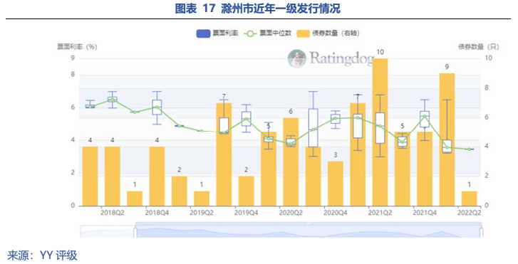 同樣沒有存在感的還有安徽的債務規模。21年存續有息債務總量17,142.29億元與凈融資規模760.43億元,債務壓力與經濟實力相匹配。除18年天長城投擔保違約外,近年也未發生有顯著影響的負面事件,區域內折價成交極少,整體風險可控。對于債市沒有存在感或許是件好事。