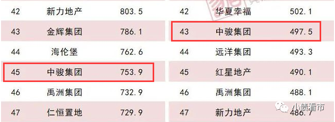 據(jù)克而瑞排名顯示,中駿集團(tuán)以753.9億操盤金額排名第45位;以497.5萬平方米操盤面積位居第43位。