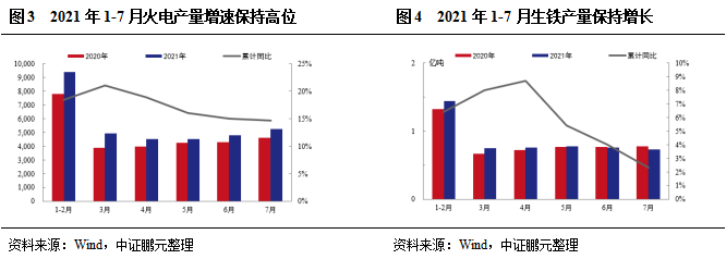 鋼鐵方面,2021年1-7月,我國(guó)生鐵產(chǎn)量為5.34億噸,同比增長(zhǎng)2.30%。建材方面,2021年1-7月全國(guó)水泥產(chǎn)量13.53億噸,同比增長(zhǎng)10.40%。