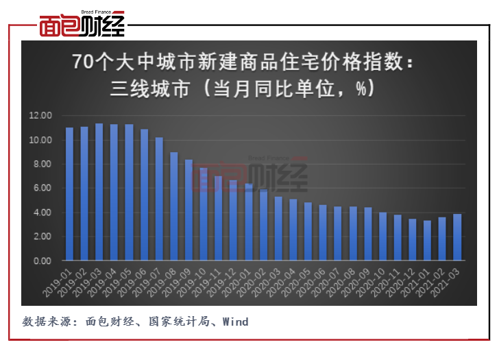 隨著大規(guī)模棚改熱潮的消退及樓市調(diào)控的不斷深入,我國(guó)三四線城市房?jī)r(jià)增速有明顯降溫。據(jù)國(guó)家統(tǒng)計(jì)局?jǐn)?shù)據(jù),相較于2019年,2020年三線城市新建商品住宅價(jià)格指數(shù)增速出現(xiàn)回落。在三四線城市房?jī)r(jià)回歸合理水平的趨勢(shì)下,碧桂園的下沉策略或?qū)⒚媾R一定的挑戰(zhàn)。