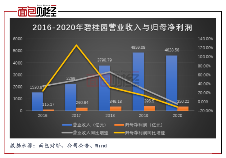 受此影響,碧桂園營(yíng)收、歸母凈利潤(rùn)12年以來首度同時(shí)下滑。公司2020年實(shí)現(xiàn)營(yíng)業(yè)收入4628.56億元,同比降低4.74%;實(shí)現(xiàn)歸母凈利潤(rùn)350.22億元,同比降低11.45%。
