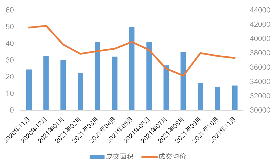 表:廈門近一年來商品成交成交量價走勢(萬平方米,元/平方米)
