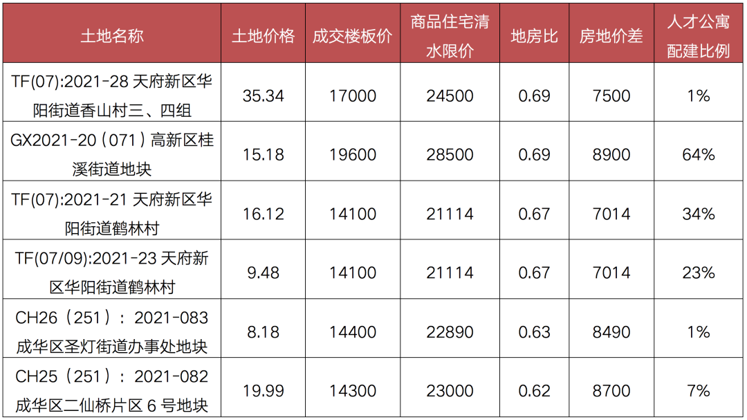 表:成都三輪集中土拍中觸頂地塊情況盈利情況(億元,元/平方米)
