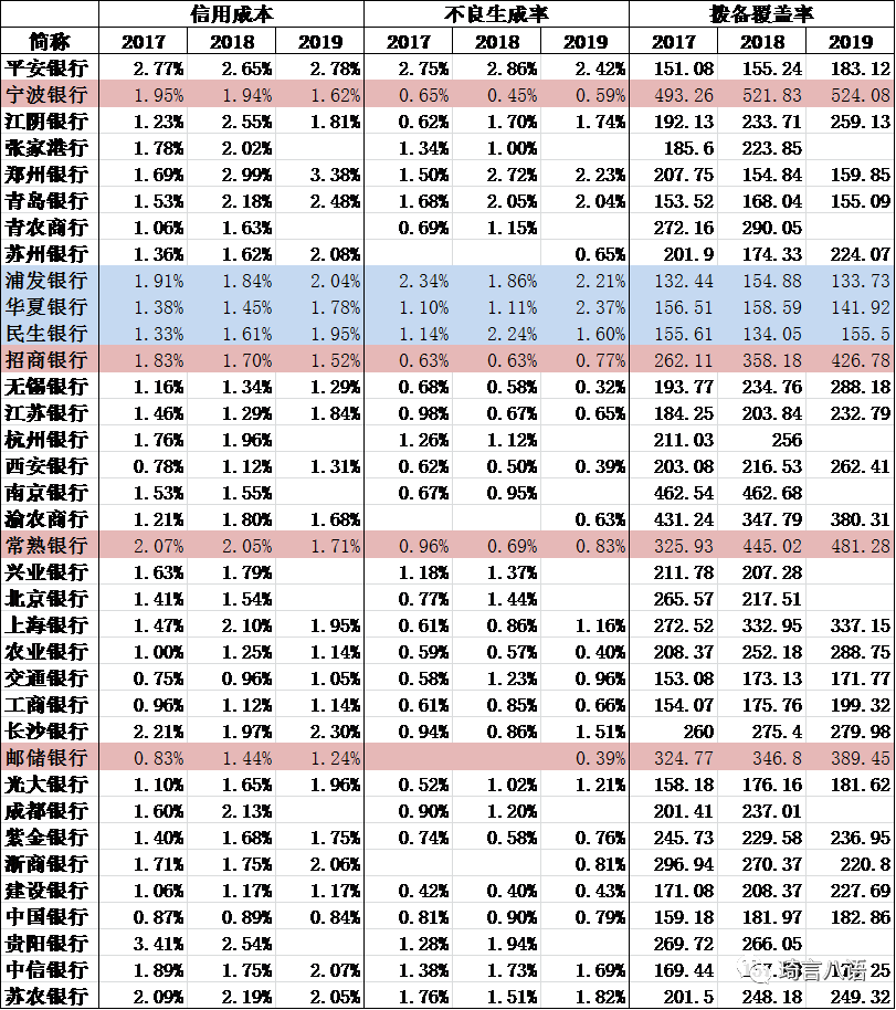 寧波銀行的信用成本(1.62%)遠大于不良生成率(0.59%),導(dǎo)致其撥備覆蓋率進一步上升至524.08%,表現(xiàn)出較強的風險管理能力,也是寧波銀行能在近兩年持續(xù)獲得估值溢價的體現(xiàn)。招商銀行、常熟銀行、郵儲銀行同樣如此。