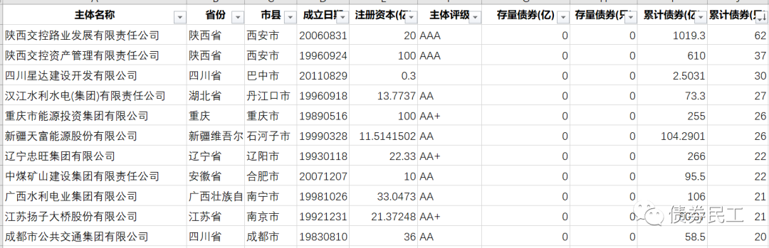 原標題: 存量債券金額為零的城投公司