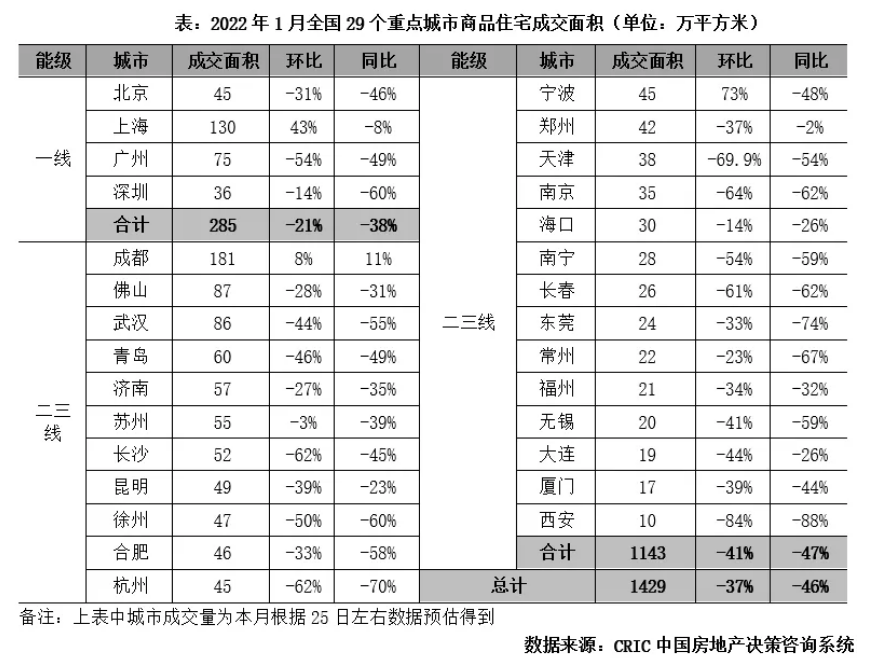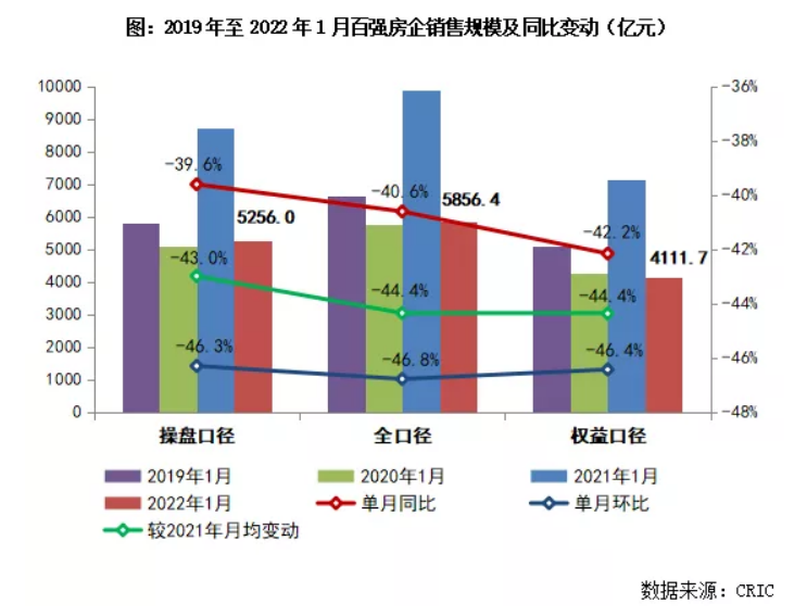 1月樓市成交同環比下降約4成,百強房企業績表現不及去年同期。