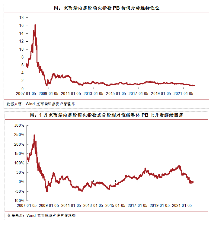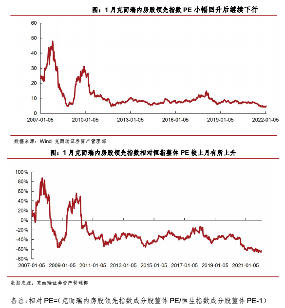 1月克而瑞領先股指震蕩后下行,估值水平仍維持低位。