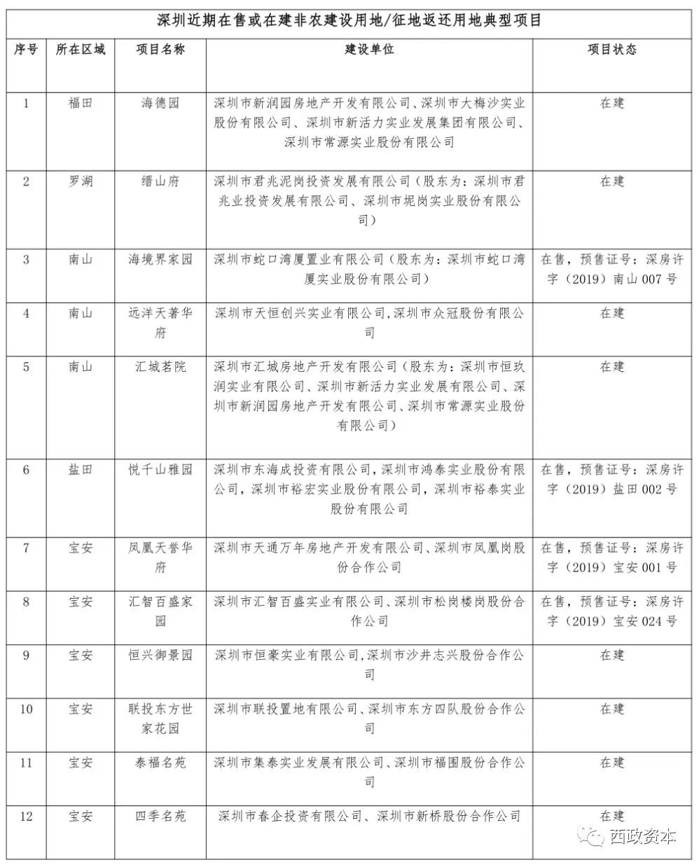 但如村股份公司明確要求,分給村股份公司的物業(yè)及其再轉讓必須由開發(fā)商承擔相應全部稅負的,實際上選擇雙(多)抬頭型,亦可通過時間差(村股份公司再轉讓發(fā)生在分配房屋之后,且間隔時間不確定)的方式,以時間換取空間,從而實現延遲納稅、合理稅籌的目的。這也是附表:深圳近期在售或在建非農建設用地/征地返還用地典型項目大部分項目均選擇雙(多)抬頭型的原因。