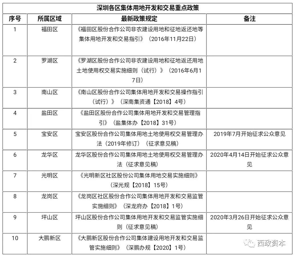 通過閱讀各區(qū)關于集體用地開發(fā)和交易管理的相關規(guī)定(詳見附表:深圳各區(qū)集體用地開發(fā)和交易重點政策),各區(qū)對于非農建設用地/征地返還用地項目在具體合作方的選取與集資資產備案審批上,規(guī)定還是各不相同,具體還是以各區(qū)具體規(guī)定為準。