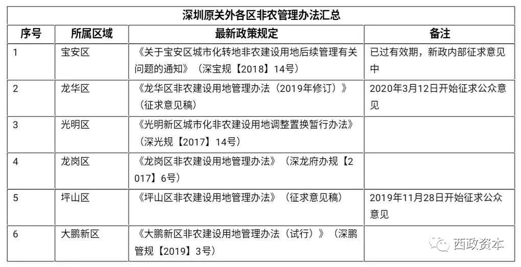 需要說明的是,在深圳原關內(福田、羅湖、鹽田、南山),存在一種特殊的“關內的非農建設用地”,主要是原特區(qū)內在上個世紀80年代劃給農村集體股份公司的用地紅線,政策依據主要是《關于進一步加強深圳特區(qū)內農村規(guī)劃工作的通知》(深府辦[1986]411號)等。
