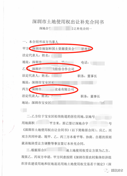 第一,補充協議簽訂主體為:國土部門VS股份合作公司 VS 開發(fā)商項目公司;