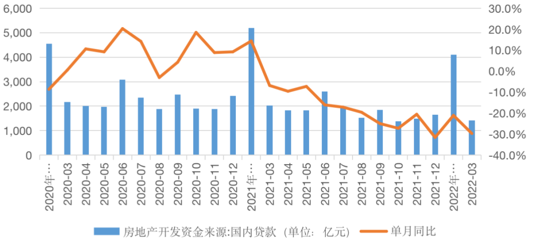 1-3月,到位資金中國內貸款為5525億元,同比下降23.5%,降幅環比擴大2.4個百分點。