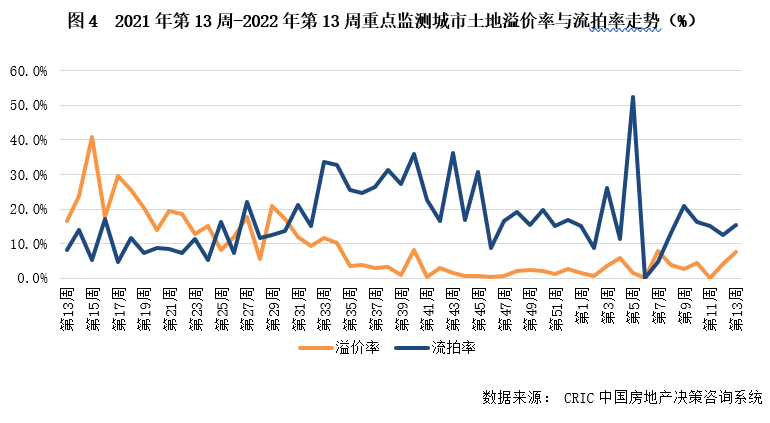 市場熱度方面。由于廈門、合肥本次集中出讓優質用地供應比例大增,并且出讓門檻也較此前降低,因此兩城均出現了地價觸頂成交的現象,首輪土拍的平均溢價率分別達6.78%和11.21%,是已完成土拍城市中平均成交溢價最高的兩個城市。在此帶動下,本周重點監測城市的溢價率也突破5%,回漲至7.7%。
