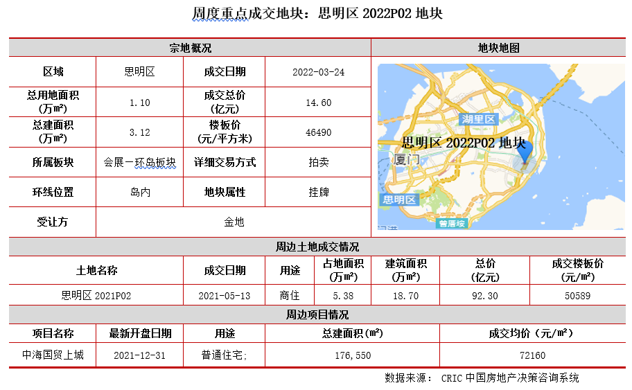 原標題: 土地周報 | 土地成交量價環比齊漲,廈門、合肥22年首拍明顯回暖(3.21-3.27)