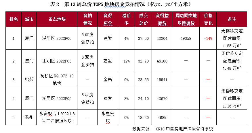 土地成交量價環比齊漲,廈門、合肥22年首拍明顯回暖