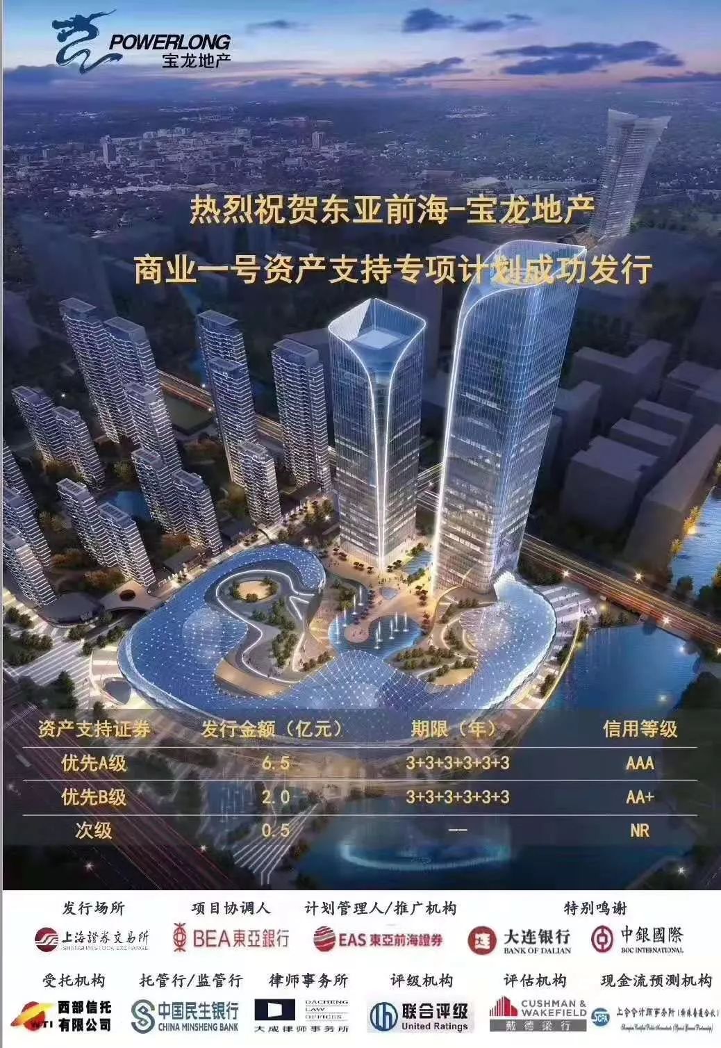 近日,由東亞前海證券擔(dān)任計(jì)劃管理人的“東亞前海-寶龍地產(chǎn)商業(yè)1號(hào)資產(chǎn)支持專項(xiàng)計(jì)劃”于上交所成功發(fā)行,規(guī)模9億元。項(xiàng)目發(fā)行人為上海寶龍實(shí)業(yè)發(fā)展(集團(tuán))有限公司,東亞銀行擔(dān)任項(xiàng)目協(xié)調(diào)人。這是繼寶龍地產(chǎn)在供應(yīng)鏈資產(chǎn)證券化嘗試后的又一突破,有利于優(yōu)化寶龍地產(chǎn)資產(chǎn)負(fù)債結(jié)構(gòu),創(chuàng)新融資模式,提高資金使用效率。