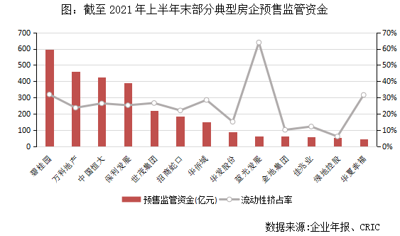 盡管從2021年上半年末80家樣本企業數據分析來看,現金短債比通過率達到90%,但隨著下半年流動性危機的爆發,表明房企實際流動性與賬面數據仍存在出入。其中預售監管資金的使用受限,就在在一定程度擠占了企業有效流動性。