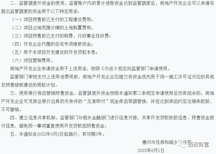 6月1日,惠州市住房和城鄉建設局發布《關于實施商品房預售資金監管額度管理的通知》,我們認為,這是一份非常具有借鑒意義的政策性文件,具體附圖如下: